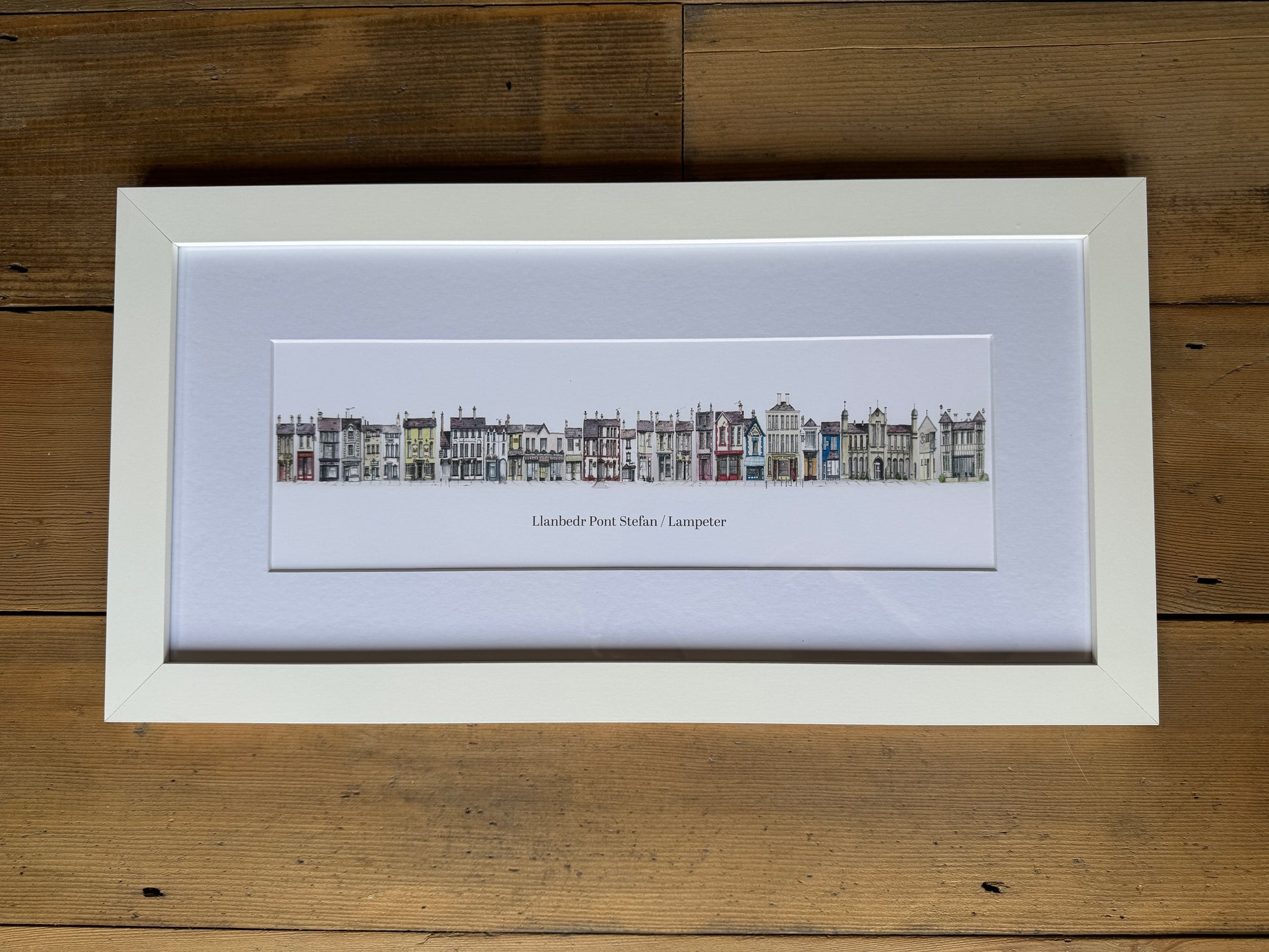 This print is framed and measures 540mm x 280mm (21in x 11in). The frames shown here have the original street painting, yours will have the Christmas edition,