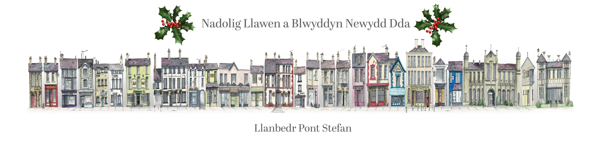 Christmas Quirky Print of Pubs and Shops in Lampeter, West Wales