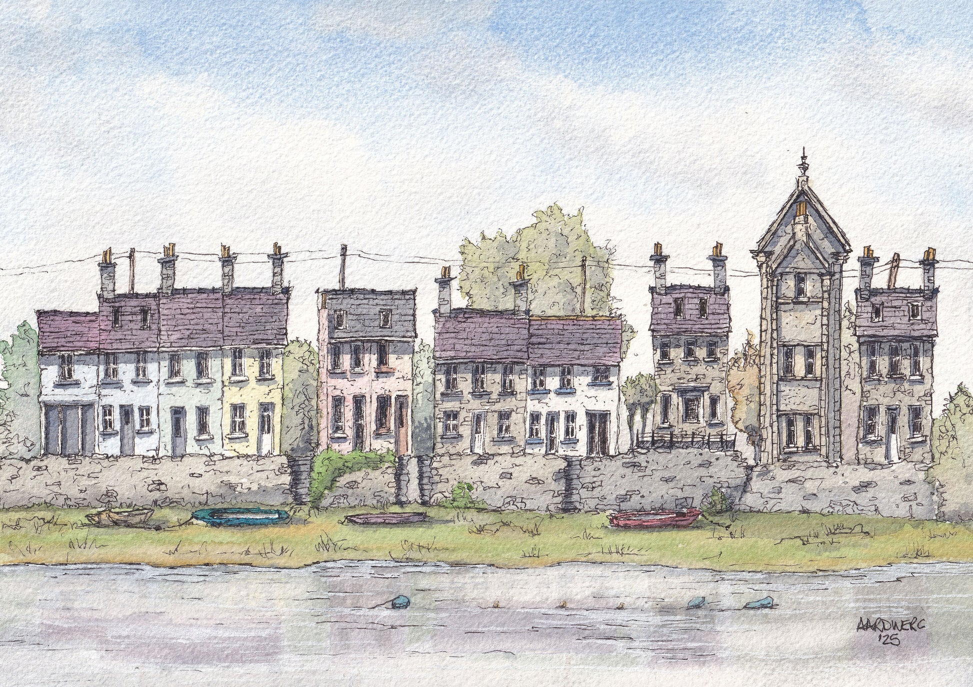 Watercolour caricature print of Aberffraw on Ynys Môn (Anglesey).