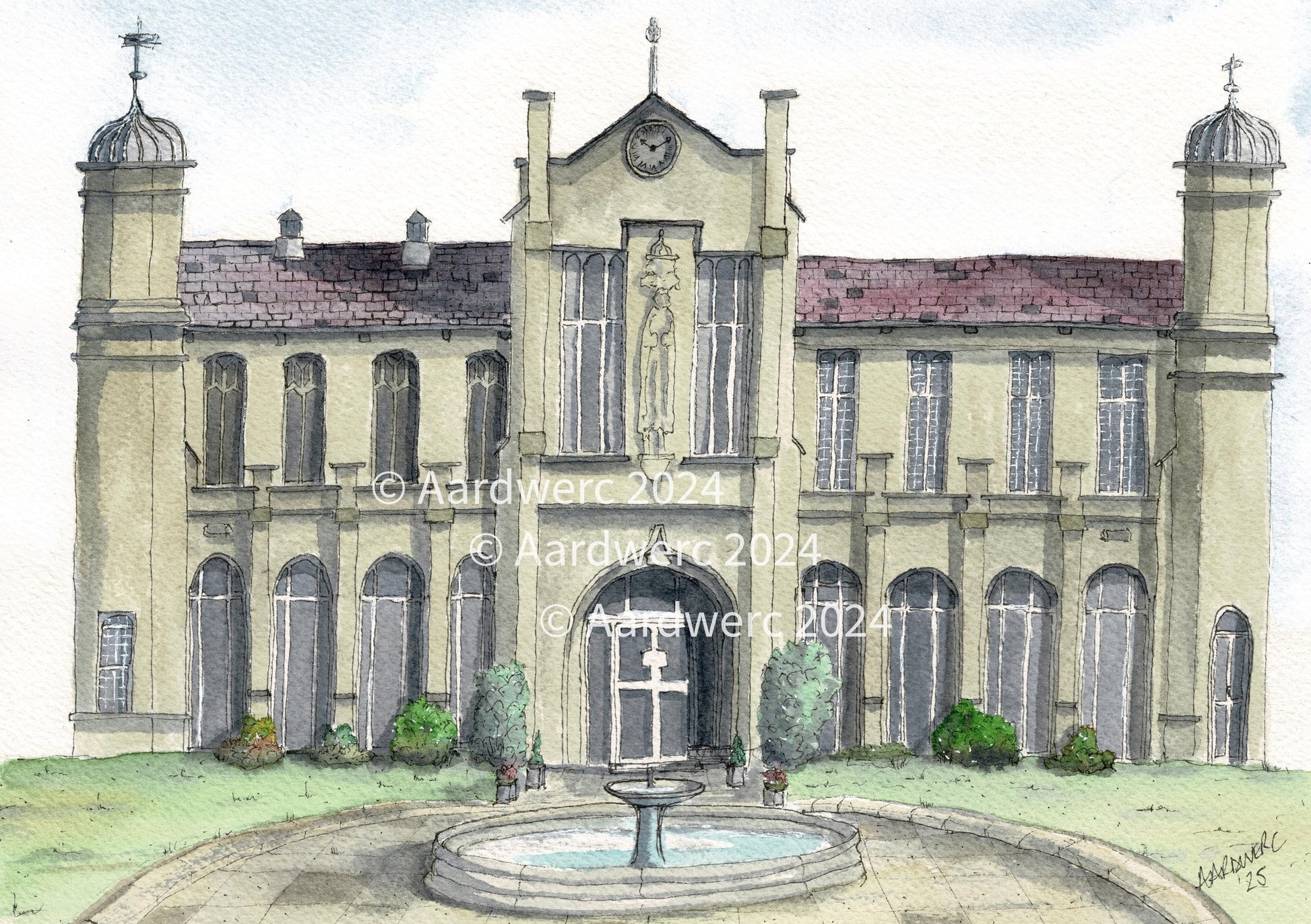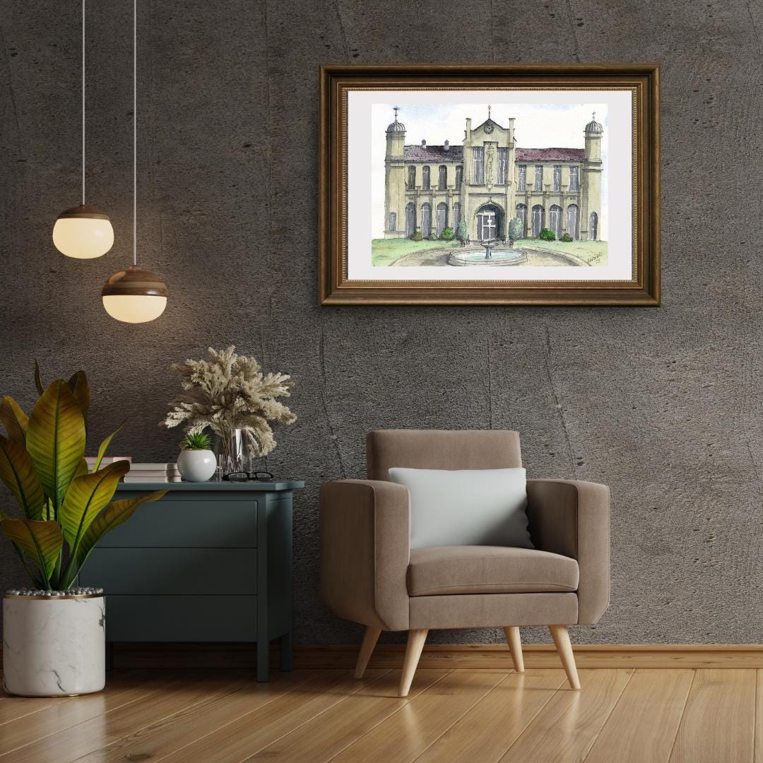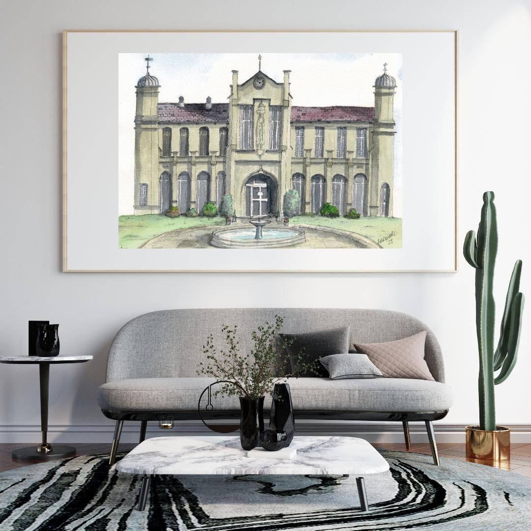 Water colour print of St Davids College University Lampeter, West Wales, I originally painted this in Watercolours using the Pen & Wash method.