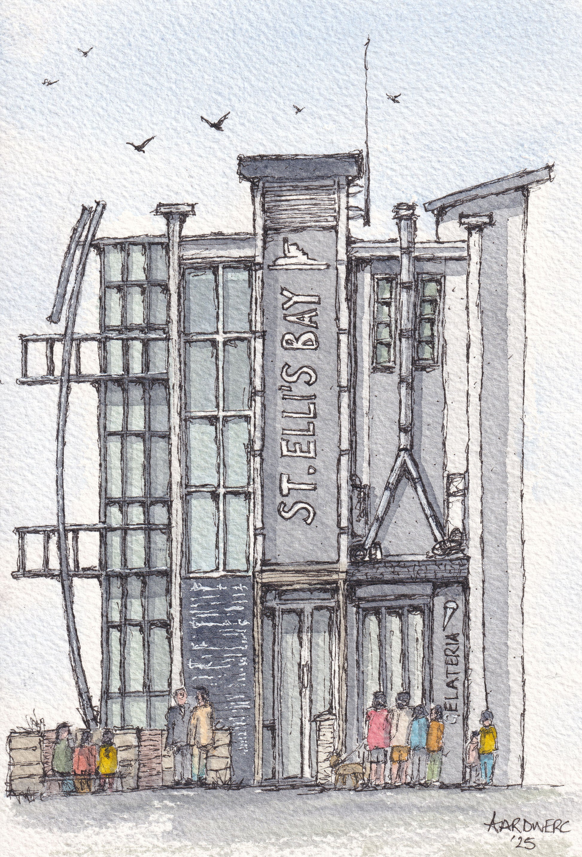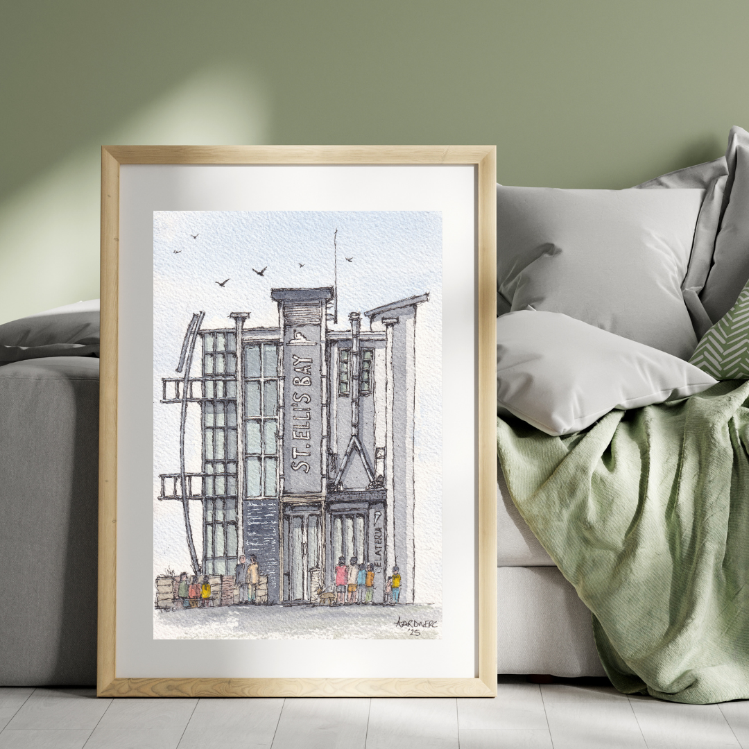 Water colour print of the St Elli Bay Bistro, Llanelli, West Wales.