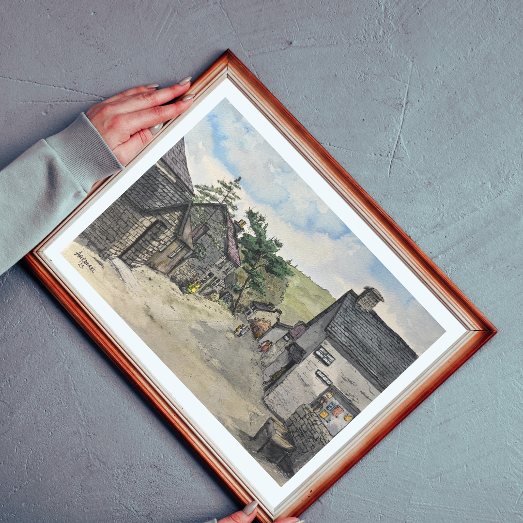 The painting is ink drawn first then painted using top quality watercolour paints.